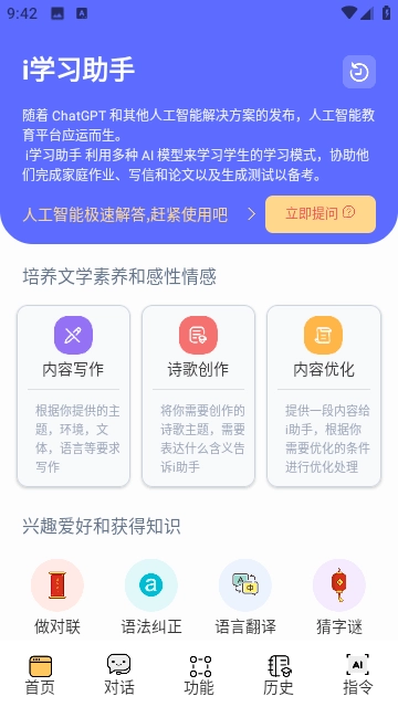 1. 这是一款依托AI技术构建的学习辅助软件,具备多种功能,使用者能够随时点击,借助它查询问题答案。