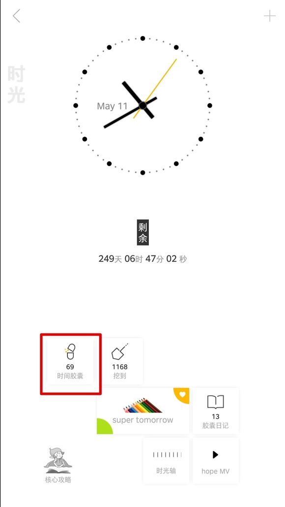 3、进入“时光”---点击“时间胶囊”