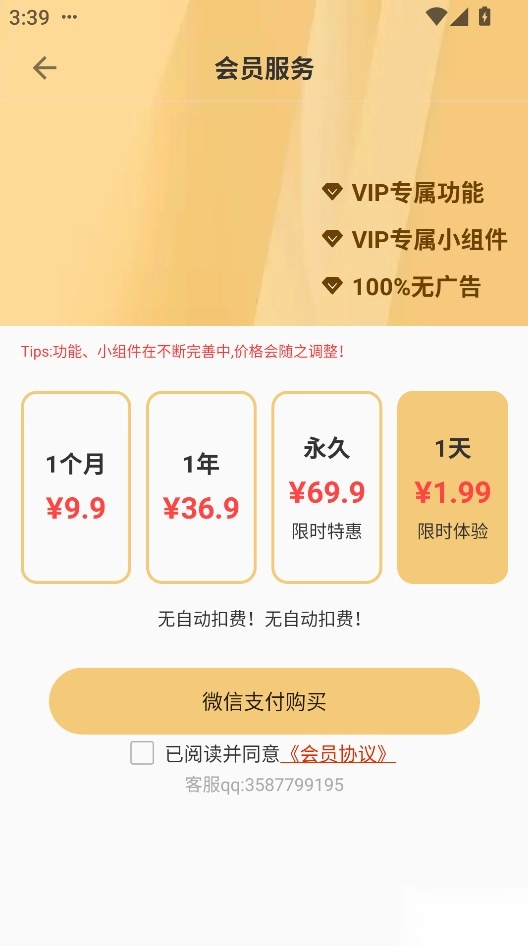 1. 道简小组件内设有VIP权限组件与免费组件,该软件可免费使用。