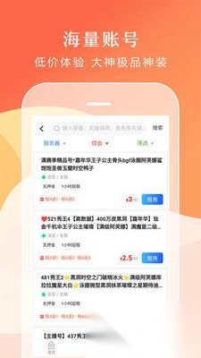 1、进入以后,您可以开始寻找需要租用的游戏账号了;