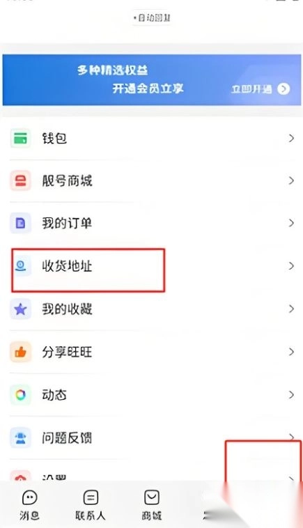 1、在我的界面,点击收货地址