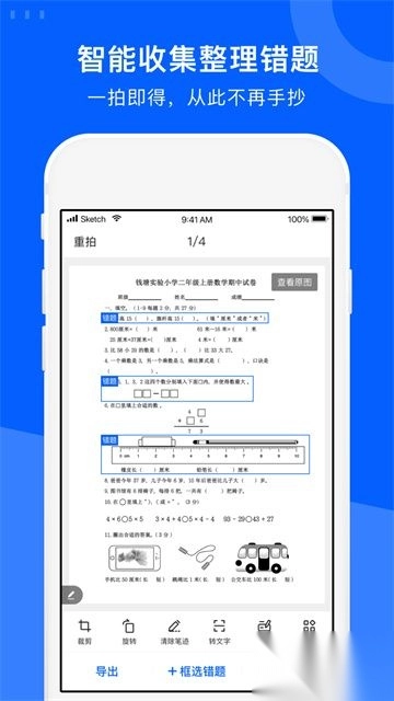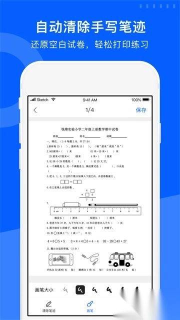自动擦除手写笔迹,以高精度还原空白试卷。