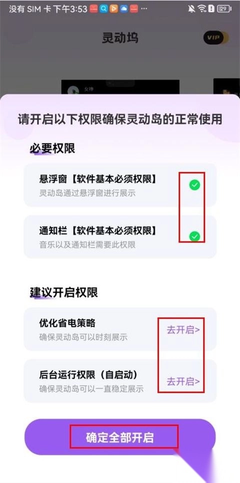 2、接着进行设置相关权限,点击【确定全部开启】如下图所示