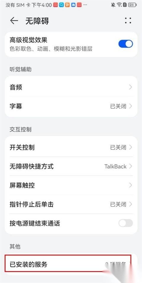 3、然后进入手机设置页面打开【无障碍】,找到【已安装的服务】