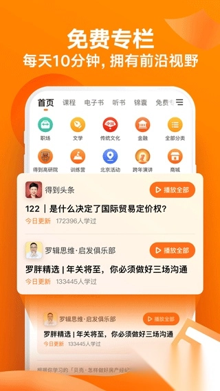 汇聚罗永浩的产品思维、薛兆丰的经济学课、万维钢的精英日课等20+领域专家,打造系统化知识体系,满足不同学习需求。