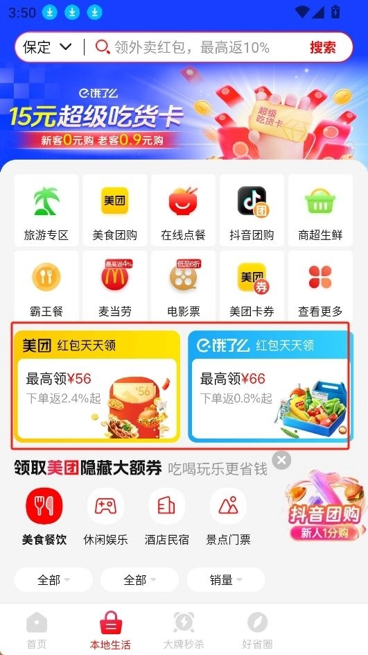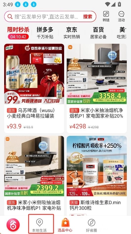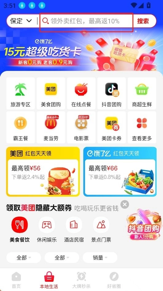 1.进入主页,点击本地生活;