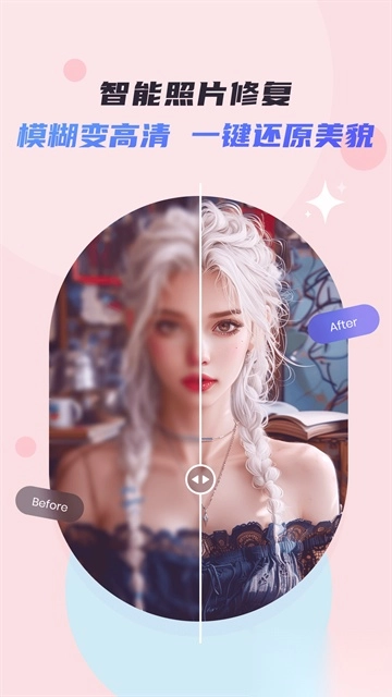 4. 老照片清晰修复,能够自动修复模糊、低像素以及老旧照片,将细节还原,同时提升照片整体质感。