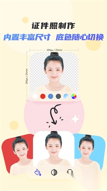 u200c5.手机制作证件照u200c,自动裁剪人像,更换背景颜色与尺寸;