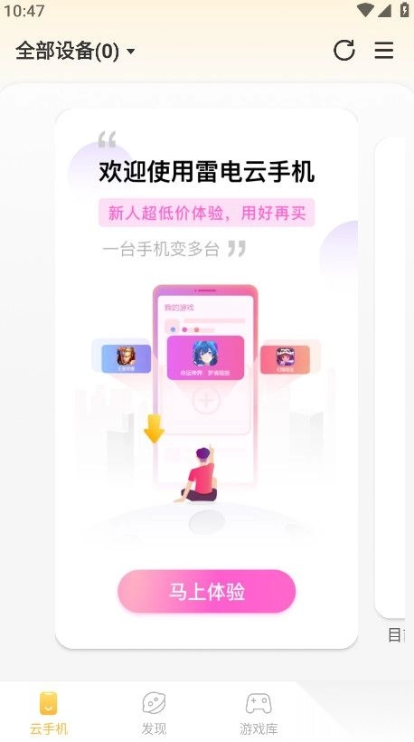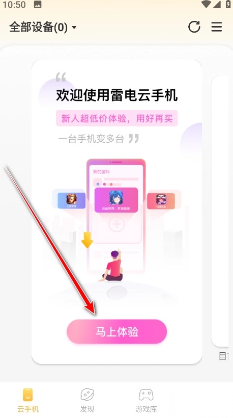 1首先,开启雷电云手机,接着点击“马上体验”。