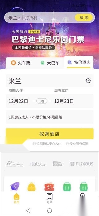 1、第一步,开启软件,于首页的特价酒店板块里寻觅到“探索酒店”按键并点击。