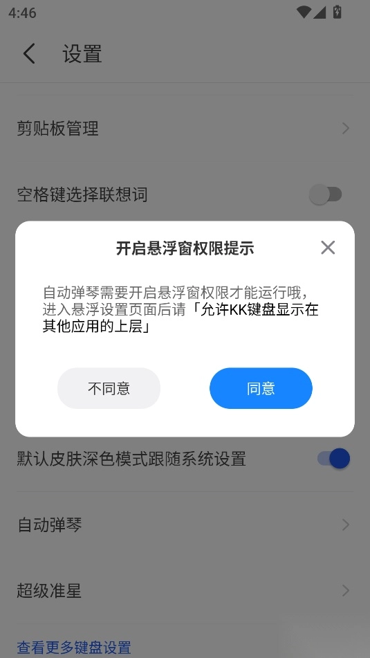 3、前往开启悬浮窗权限后,横屏时即可体验自动弹琴
