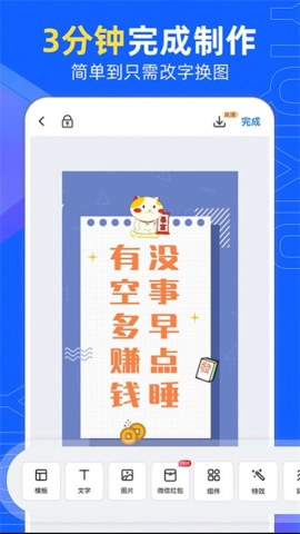 2、新颖的手机海报模板和独特的图片处理工具,使得用户可以制作出绝妙的促销海报、活动海报、广告图片等,轻松吸引客户目光。