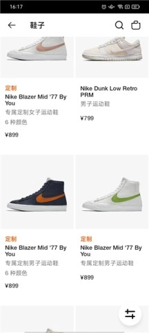 1. 轻点右上角的三条杠,接着在出现的选项中找到“专属定制”,然后挑选自己心仪的鞋款。