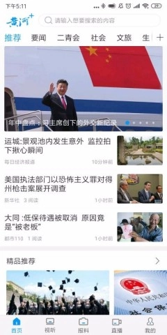 2. 初次打开软件时,能够在首页从推荐、要闻、社会、文旅等栏目中选择查看资讯。