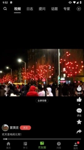 5、“农友圈”板块尤为精彩,在这里你能够观看其他农友分享的日常小视频,从而轻松获得灵感。