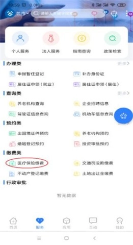 3、进入“服务”页面后,点击“医疗保险缴费”,此步骤务必执行,不可遗漏。
