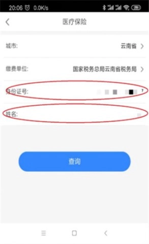3、随后输入参保人的身份证号码与姓名,点击“查询”按钮。