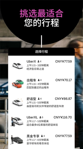 免去寻找停车位和长时间等待出租车、公交的烦恼,轻按屏幕轻松呼叫叫车,再加上城市中灵活的支付方式,无论是前往机场还是出门办事,优步能让移动更加顺畅。