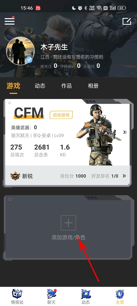 3、在个人主页的下方,有一个用于添加游戏角色的方框,点击该方框即可进入。