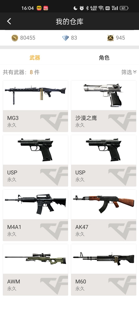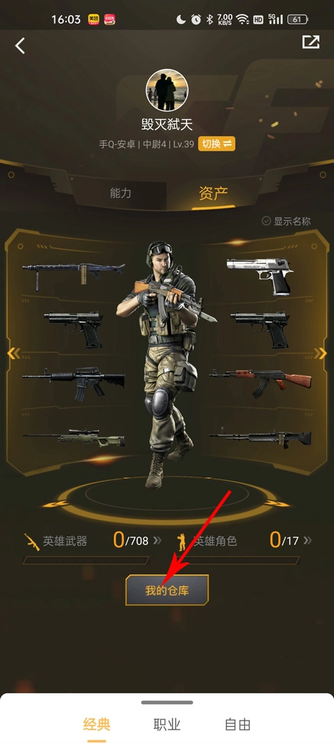 4、点击下方的我的仓库,就可以查看游戏中的所有游戏武器和道具了。