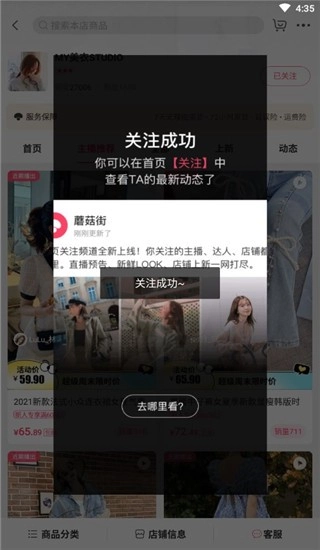 2. 当进入首页之后,点击你想要关注的店铺中的商品,具体位置可参照图示。