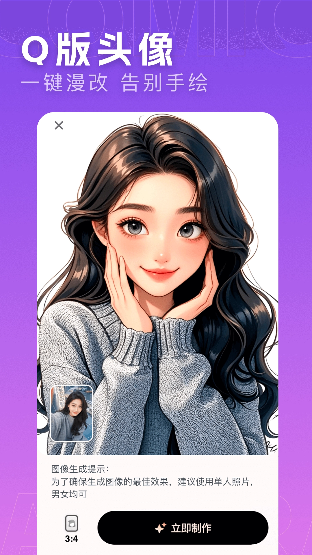 一键拍出独具特色的漫画脸,打破次元界限,踏入二次元奇妙天地。