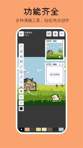 为像素画爱好者量身打造的绘画软件“画像素”,配备了从基础画笔、橡皮擦、填充桶,到进阶魔棒、套索、抖动笔等多样绘图工具,能适配不同用户的创作偏好。同时,它还支持条理分明的图层管理功能,操作直观易上手,助力创作者更高效、自由地开展像素创作。