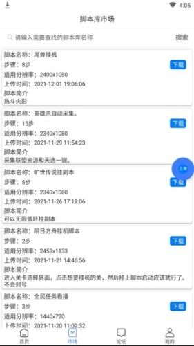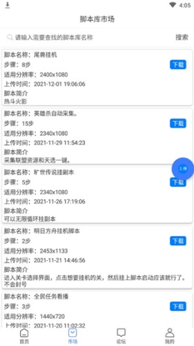 3、点击市场,可以查看各种应用,游戏的脚本
