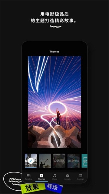 3、强大视频编辑器会自动应用同步节奏的主题和转场,打造非凡的可分享编辑