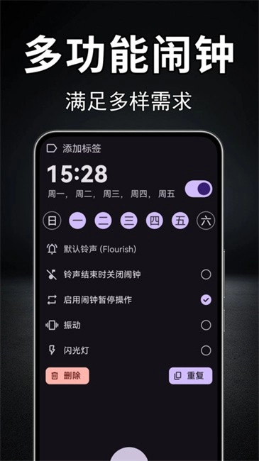 它拥有重复提醒的功能,能协助您在繁忙的日程里维持专注度与高效状态。只需进行简易的设置,您就能便捷地创建单次或循环性的闹钟,以应对各类不同的需求。