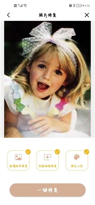 1、借助AI技术,一键即可高清修复照片上的划痕破损、模糊不清等问题,使其焕然一新