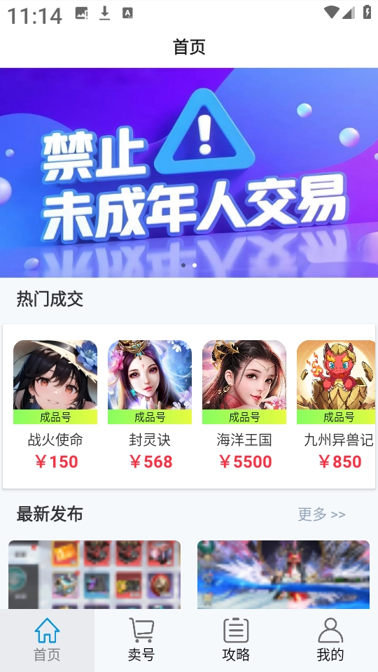 2、首页包含了超多最新发布的游戏账号,如图所示。