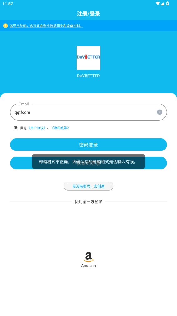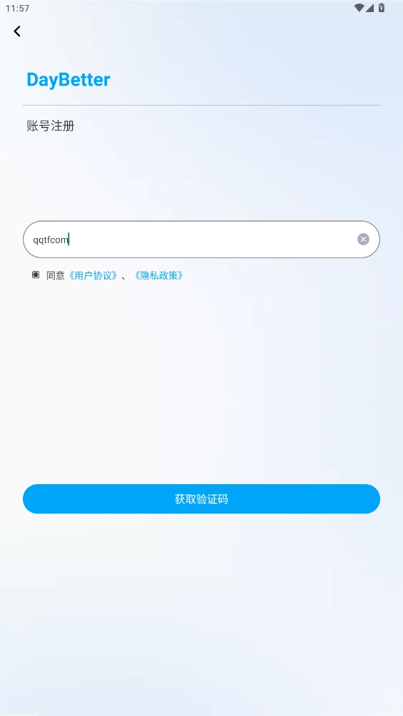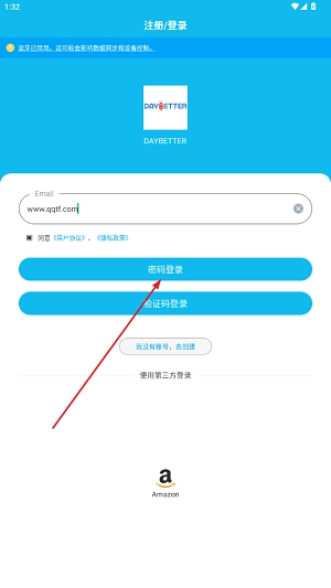 1、进入DayBetter后,输入个人邮箱账号完成登录操作;